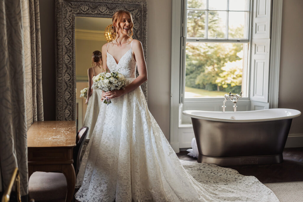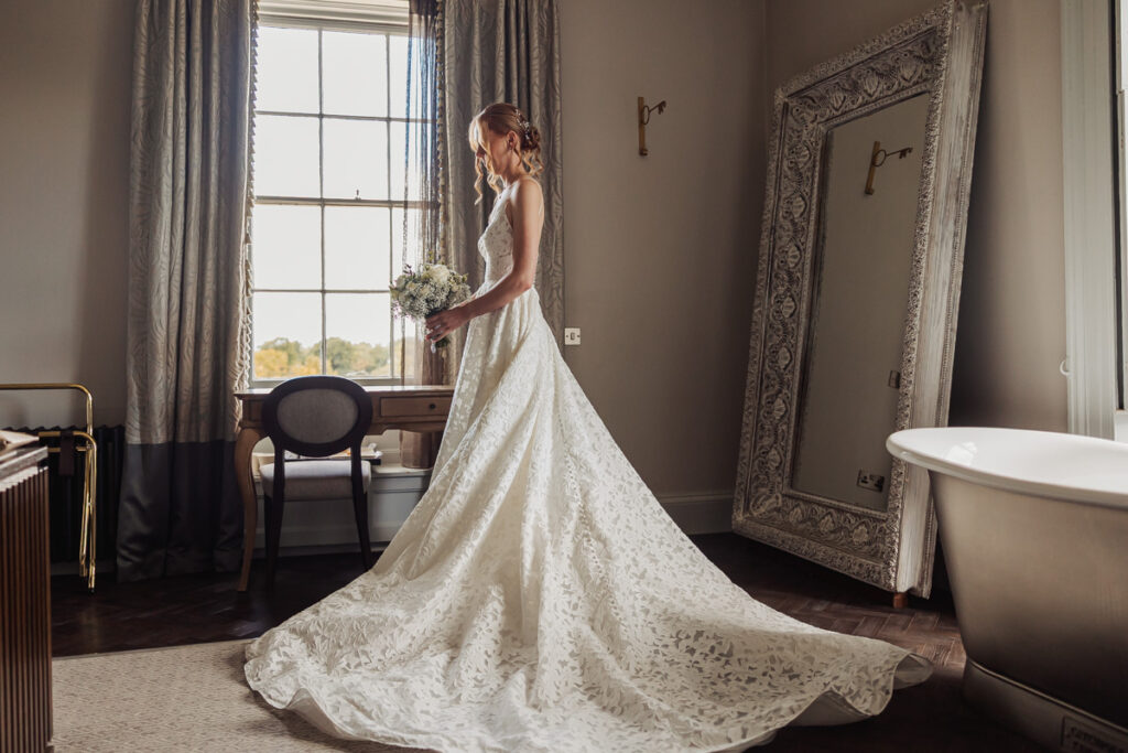 Saltmarshe Hall has beautiful on-site bridal preparation rooms, flooded with natural light and styled with elegant details — yes, even a statement bathtub! These spacious rooms are the perfect place to get ready on the morning of your wedding, offering endless opportunities for relaxed and stylish bridal prep photos.