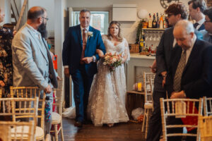 Katy made her way down the aisle to the “Hubby to be” with dad on her arm,