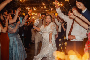 After the speeches and plenty of laughter, it was time to round off the celebrations with the cake cut, first dance, and a night full of dancing. Just when I thought the evening was winding down, Katy suggested sparklers. I’ll admit my first thought was “in this weather?!” But I’m so glad we went for it, because it turned into one of the most epic photos of the whole day.