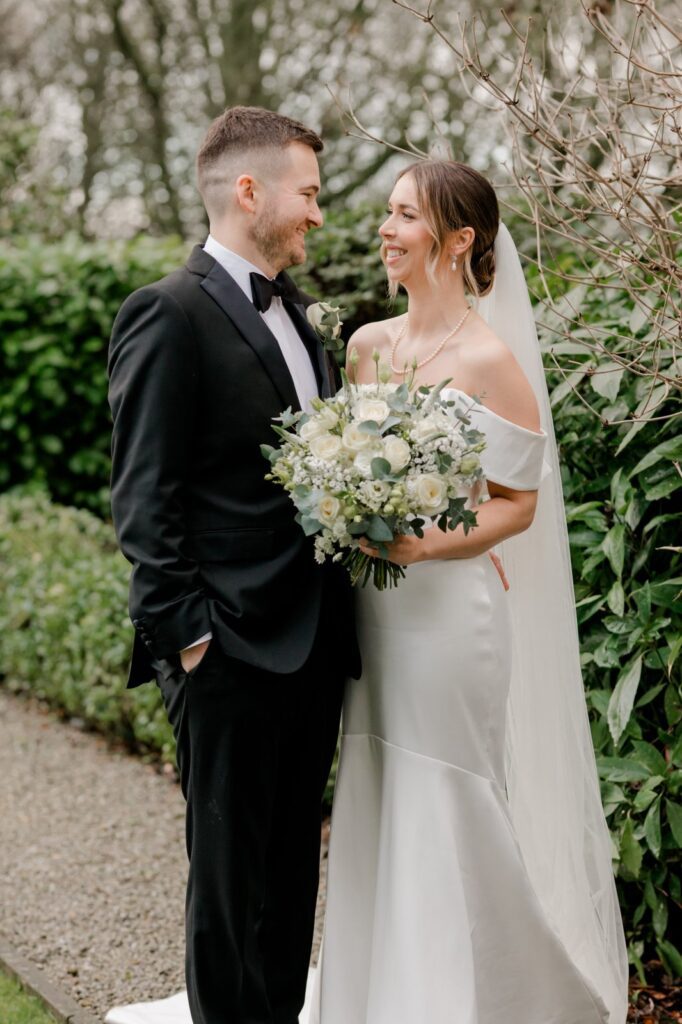 The landscaped gardens at this Yorkshire wedding venue give you everything you need for breathtaking couple portraits. Lush greenery, elegant backdrops, and open countryside views — and on this occasion, Sully the dog made a special appearance to say hello to his humans. The pawfect addition to the album.