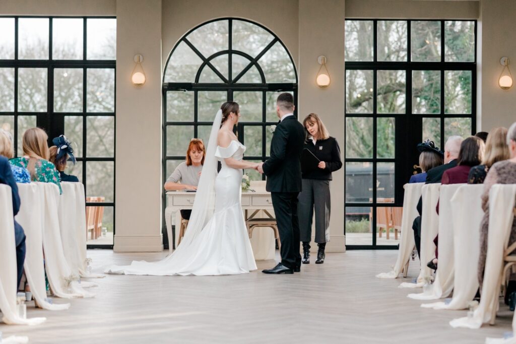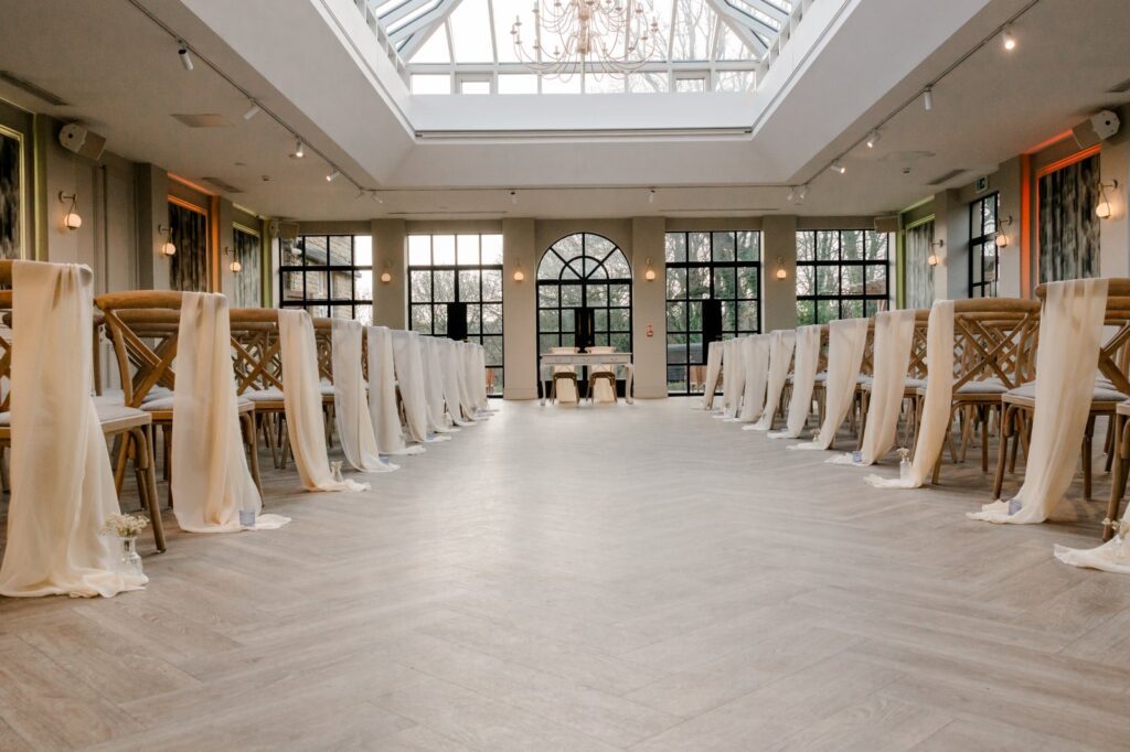 One of the crown jewels of this Leeds wedding venue is the stunning Orangery. Recently built and flooded with natural light, this bright and spacious ceremony room is a photographer’s dream. The clean lines and open feel let the moment speak for itself — no flash needed.