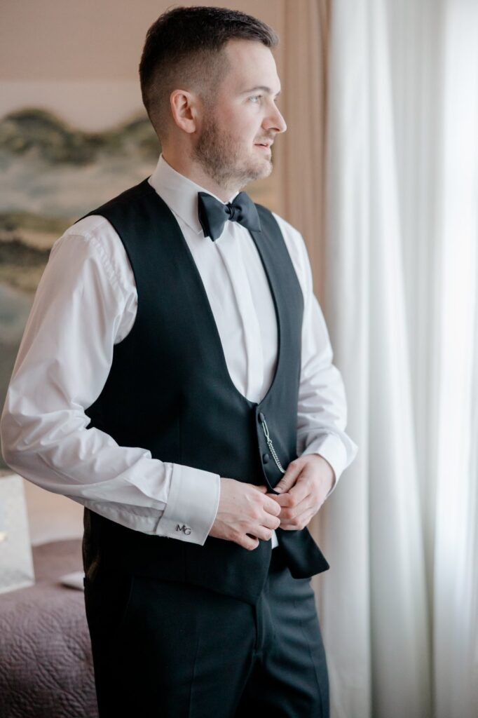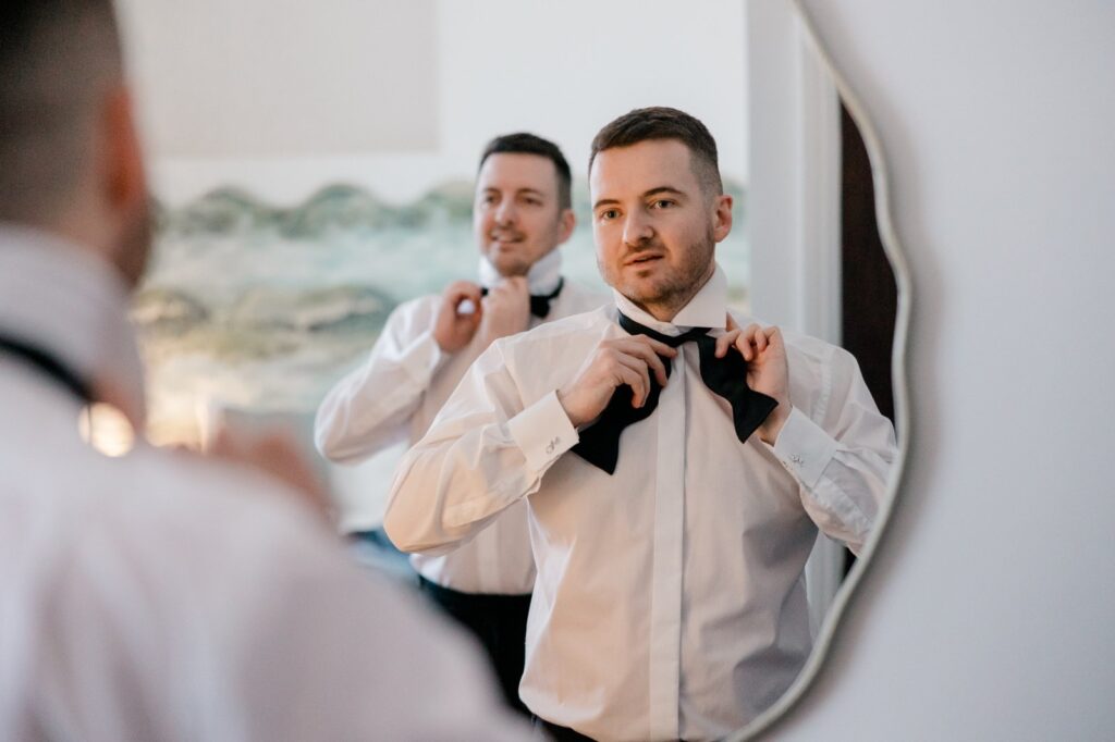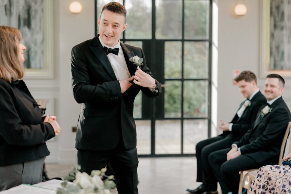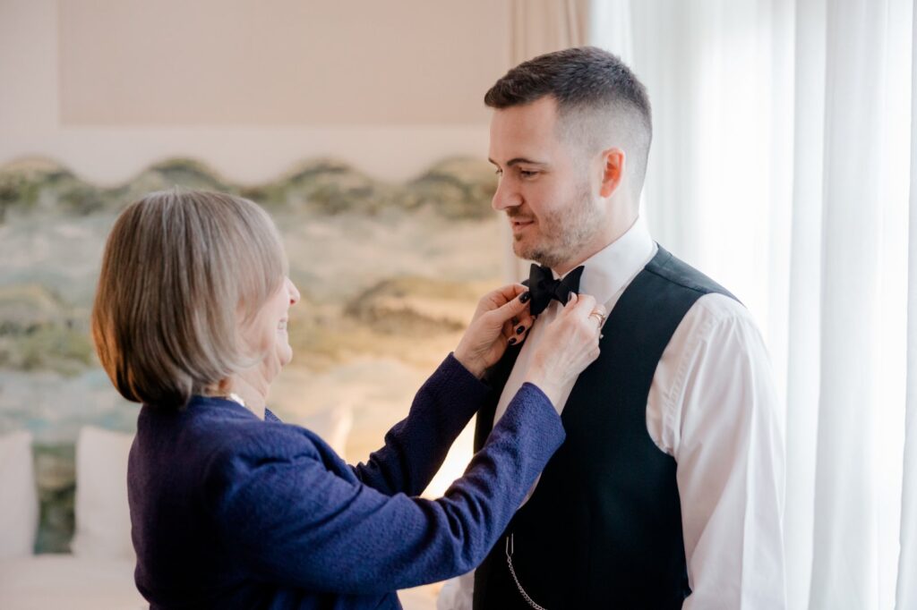 Woodlands Hotel spoils couples when it comes to bridal prep. Mollie and her bridal squad got ready on-site in one of the dedicated prep rooms, making for a relaxed and seamless morning. Matt wasn’t far behind, slipping into his suit just down the hall — perfect for capturing both sides of the story without the chaos of travelling between locations.