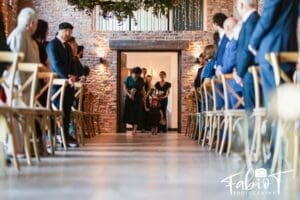 With its long aisle framed by beautiful doors, this ceremony room offers an unforgettable walk to say “I do.” Exposed brickwork, impressive chandeliers, and gorgeous lighting combine to create the perfect setting for your civil ceremony.